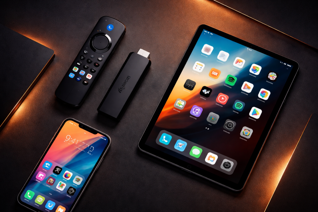Een IPTV ontvanger is elk apparaat waarmee je Bermuda TV kunt bekijken. Dat kan een smart TV zijn, een Android TV-box, een Amazon Fire TV Stick of gewoon je smartphone of laptop. Je hebt geen schotel nodig, geen kabeltechnicus aan de deur — alleen een internetverbinding en een van de apparaten hieronder.